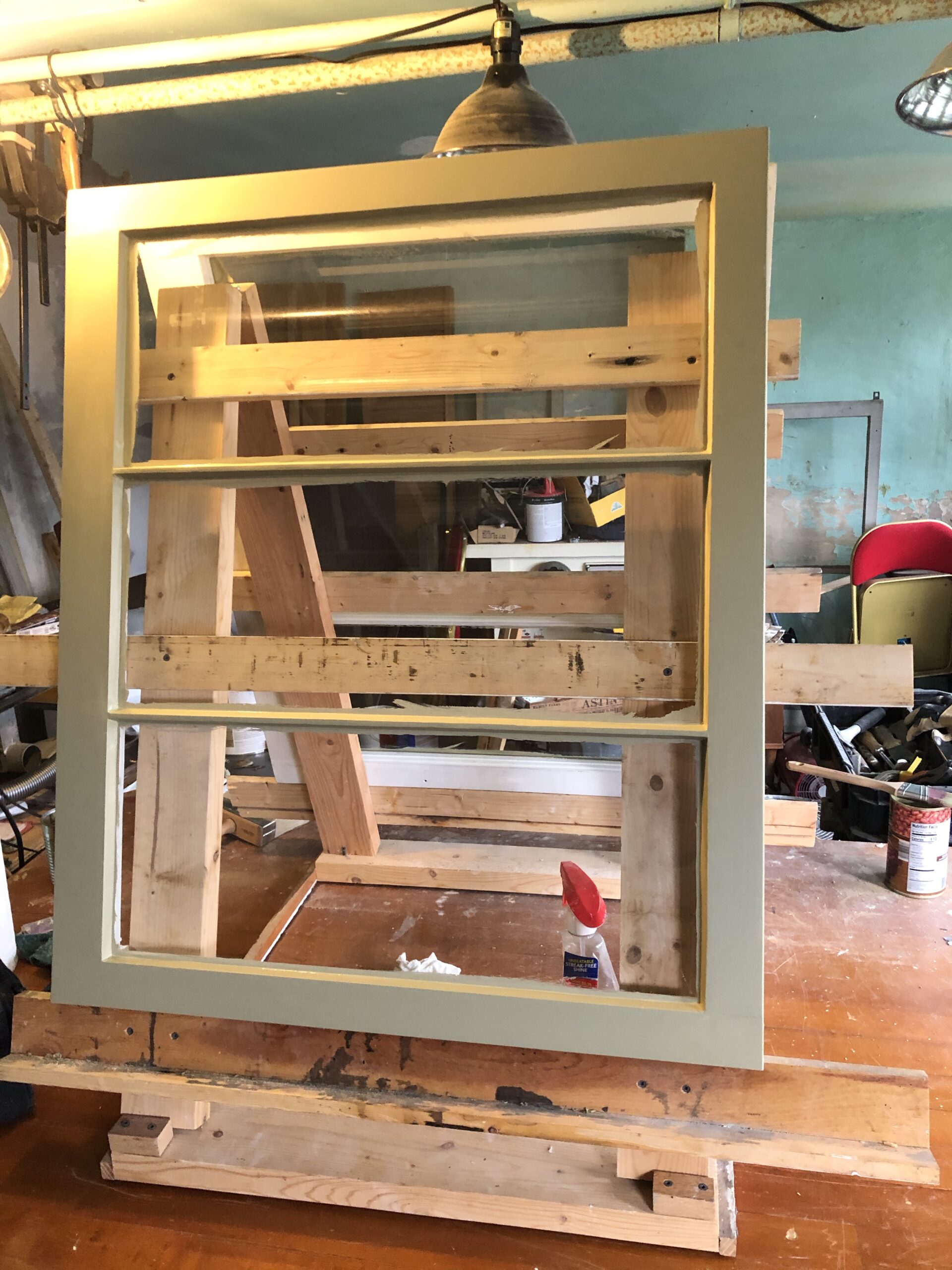 All Sashes (casement, double-hung, storms) receive a 100% materials removal to bare wood, linseed bath, and proper Sarco glaze, vintage-stock Red Devil DP1 glazing points, linseed-oil primer, and PPG top-shelf paint. Hardware is torched to bare, polished, and gloss black ‘Japanning’ coating, as was the look of the day.
