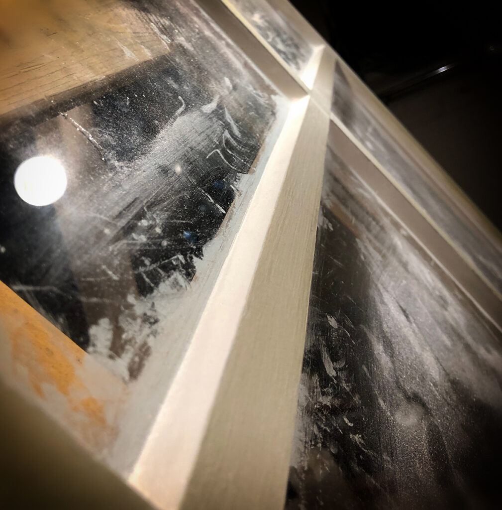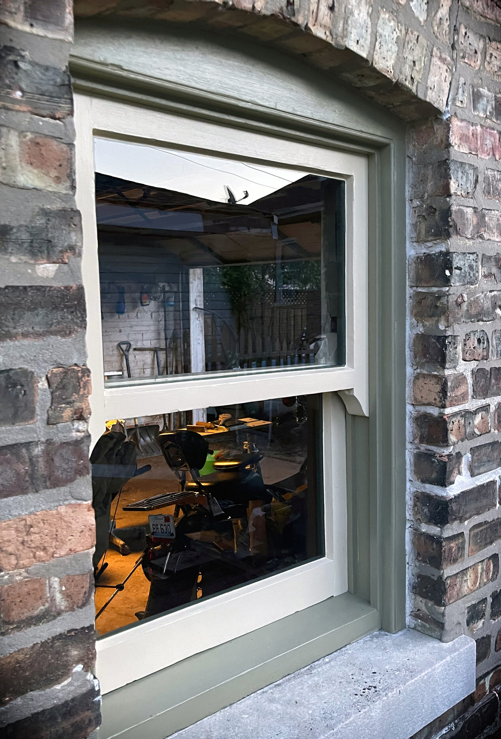 Fresh Glazing Bead on Casement WindowStorm in Workflow, Glass & Paint RemovedRoughing-in Fresh Glazing Putty Prior to Slicking BevelBefore & After LR Double-Hung Sashes & CordageLR Double-Hung, Full Resto Complete, Travelling UpperFresh Install, Garage Double-Hung SetNew Spot Cord, Jambs, Sashes Shellacked to Match Interior