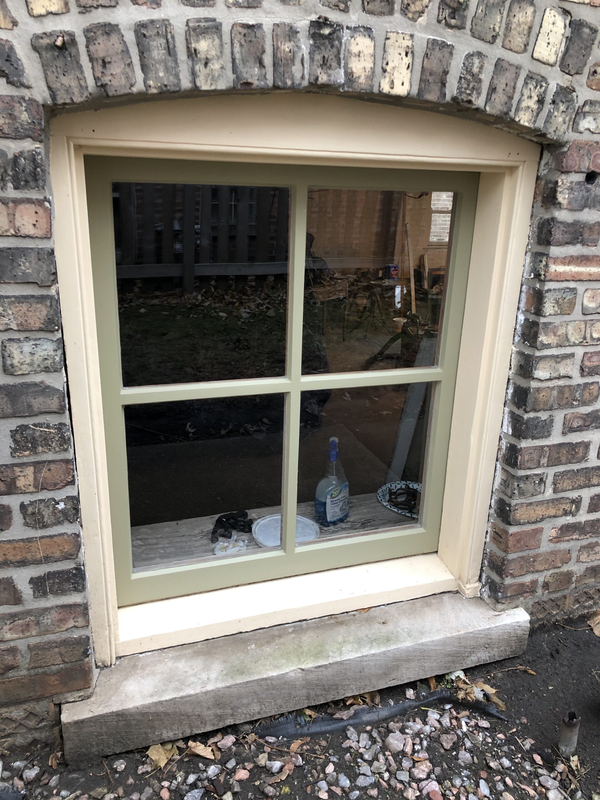 All surfaces which the actual Sash makes contact with, are also heat-scraped to bare, oiled, primed and painted (or shellac-varnished depending on part). “All Inclusive” means this is bottom line cost for all materials & labor. The only nominal expense might be to replace any existing cracked glass. For this, only ‘vintage wavy’ reclaimed glass is used and cut to fit. NO modern glass will be used.